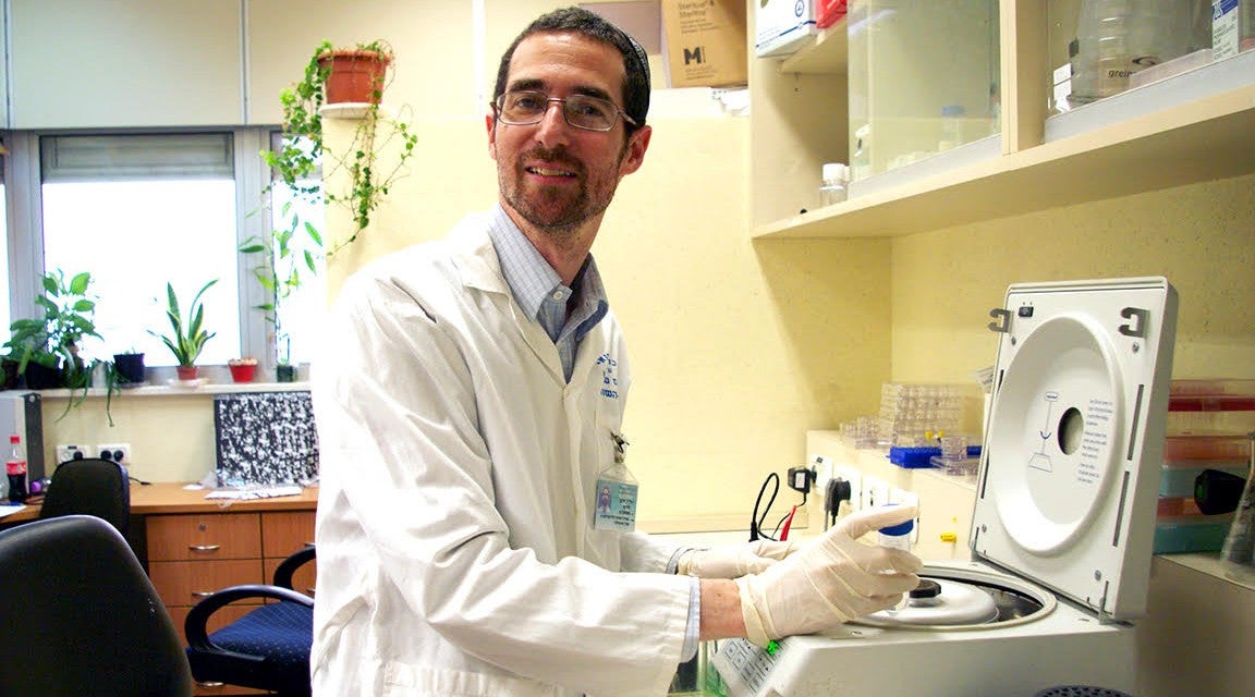 O Dr. Ziv Gil, do hospital Technion and Rambam em Haifa, está pesquisando os mecanismos celulares subjacentes à disseminação, ou metástase, das células cancerosas do pâncreas. (Pioter Flite)